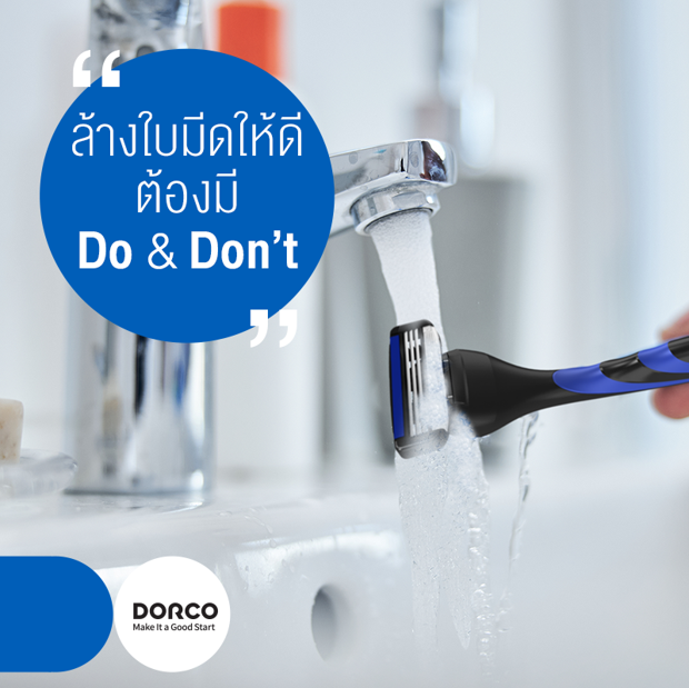 ล้างด้วยน้ำสะอาด : ใบมีดโกน DORCO ถูกออกแบบมาให้ล้างทำความสะอาดง่าย โดยเฉพาะเทคโนโลยี Open Flow ของ DORCO ที่เพียงเปิดน้ำให้ไหลผ่านมีดโกนหนวดก็สามารถกำจัดเศษหนวดออกได้โดยง่าย